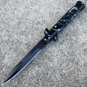 OTF Messer 8,75 Zoll Schwarzes Italienisches Stiletto Messer Switch Taschenmesser Black Pearl